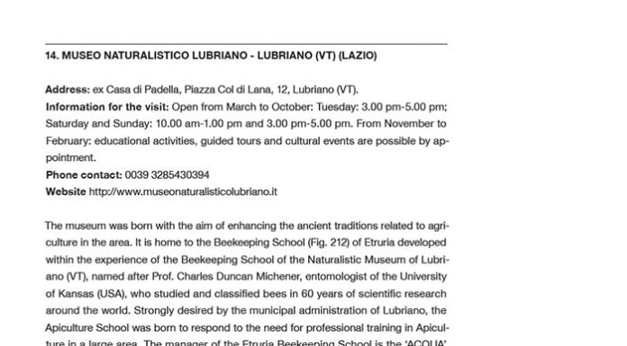Nel volume internazionale Italian apiculture, citata la Scuola di Apicoltura dell’Etruria
