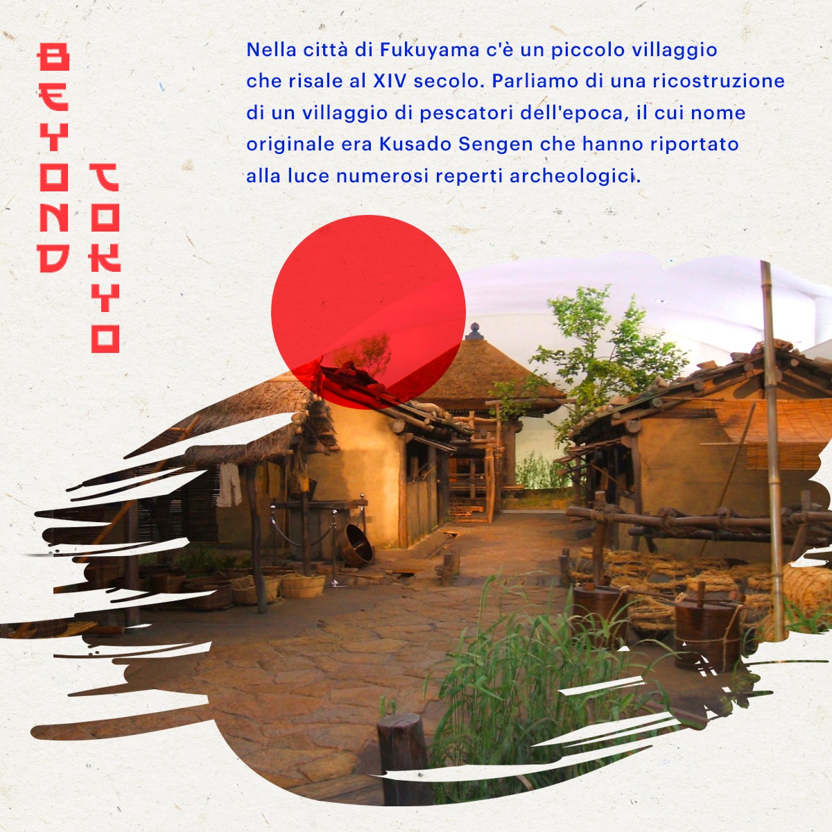 Parliamo di una ricostruzione di un villaggio di pescatori dell’epoca, il cui nome originale era Kusado Sengen (草戸千軒), ricostruita all’inizio del 1900. Negli anni ’60 sono stati effettuati degli scavi nelle vicinanze del fiume Ashida (芦 田 川, ashida-gawa) che hanno riportato alla luce numerosi reperti archeologici.
