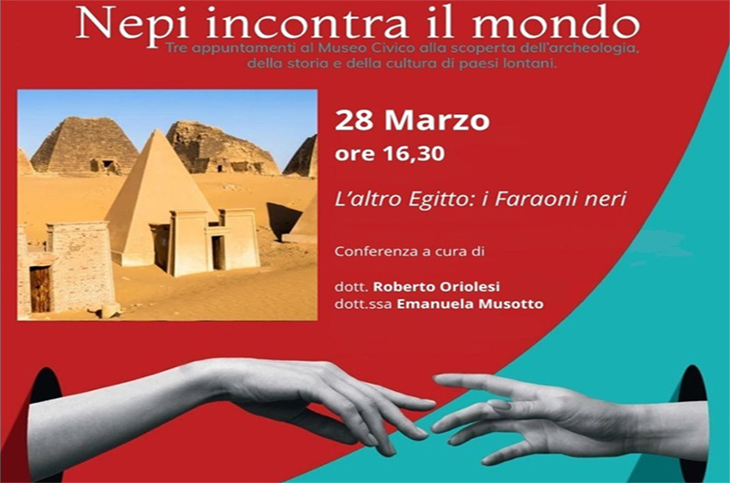 Anche quest’anno viene proposta dal museo civico la trilogia ” NEPI INCONTRA IL MONDO ” che ha l’obiettivo di far conoscere al pubblico l’archeologia, la storia e la cultura di paesi stranieri e che andrà a toccare, in questo ideale viaggio, nuove mete. Il primo degli appuntamenti si terrà Sabato 28 marzo, alle ore 16,30 e sarà incentrato sull’archeologia del SUDAN.