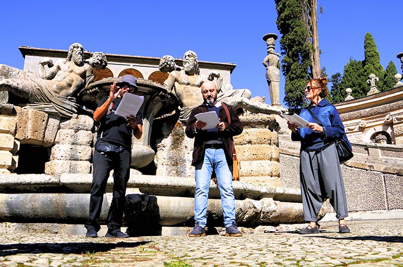 L’inedita performance itinerante, dedicata ai “Giardini Alti” di Palazzo Farnese, guiderà il pubblico tra le storie e le memorie di illustri personaggi, architetti e fontanieri, scrittori e viaggiatori che in diverse epoche hanno commissionato, ideato o attraversato i giardini di Palazzo Farnese. Attraverso una selezione di testi verranno raccontate le vicende legate alla progettazione del parco, dalla sua origine cinquecentesca ai successivi interventi di rimodellamento avvenuti nei secoli, assieme all’ideazione degli apparati architettonici, delle fontane e catene d’acqua e della scelta e messa a dimora delle specie vegetali, che ancora oggi contraddistinguono l’unicità del luogo.