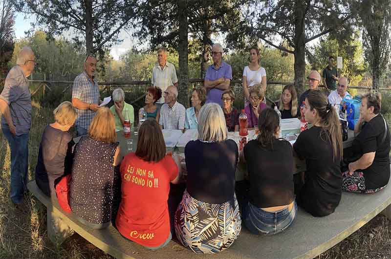 “Tanti gli incontri durante i giorni della vacanza – spiegano i promotori dell’iniziativa -: il 27 agosto, con il rappresentante della Selva del Lamone di Farnese, presso il Complesso della Madonna del Monte a Marta (per il maltempo). L’intervento di Camillo Castellani è stato così appassionato e coinvolgente da incuriosire ancor di più i partecipanti che confidano di poter riprogrammare la tanto attesa visita guidata en plein air; con gli amici di Marta il 28 agosto, occasione in cui è stato possibile riflettere sul rapporto tra ambiente e patto tra generazioni, anche partendo dal docu-film di Leonardo Di Caprio “Punto di non ritorno”. Temi molto cari al gruppo che da tanti anni si occupa della piantumazione di alberi (boschetto “Nonni e Nipoti”, progetti “Un Albero per la Vita” e “Antichi frutti dimenticati”) e della diffusione di orti solidali, didattici e terapeutici riuniti nell’acronimo R.O.S.A. (Rete orti solidali amici) a Viterbo e provincia.