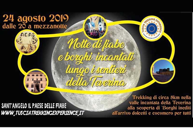 L’appuntamento è per sabato 24 agosto 2019 alle ore 20,00 a Sant’Angelo di Roccalvecce (VT) dove dopo l’iscrizione partiremo per il trekking (raccomandato abbiagliamento comodo meglio se da trekking, scarpe comode con suola antiscivolo, torcia elettrica o lampada frontale, uno spuntino e una buona scorta d’acqua).