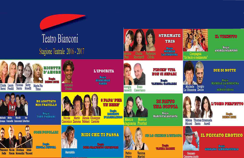 La Direzione Artistica del Teatro Bianconi di Carbognano ha anticipato il cartellone della nuova stagione teatrale ormai quasi completo, al quale mancano solo le date degli spettacoli, ancora in fase di definizione, che saranno rese note al momento della presentazione ufficiale. Ancora una volta appare evidente come l’impegno assunto con il pubblico sin dall’inaugurazione, di migliorare ogni anno l’offerta dell’anno precedente, sia pienamente riuscita. Un condensato di suggestioni e divertimento, 14 spettacoli comici, intensi, entusiasmanti, emozionanti: dal musical (un grande ritorno dopo anni di assenza), alla commedia italiana; dalla risata amara che fa riflettere, a quella di puro divertimento; dalla musica, al teatro di parola. Tutta la magia del Teatro in un’unica stagione. Come sempre la Direzione del teatro ha, in totale autonomia, scelto, dopo un’attenta selezione tra decine di proposte, la giusta suggestione, il testo originale, il talento cristallino, la professionalità degli allestimenti per garantire agli spettatori il massimo della qualità.