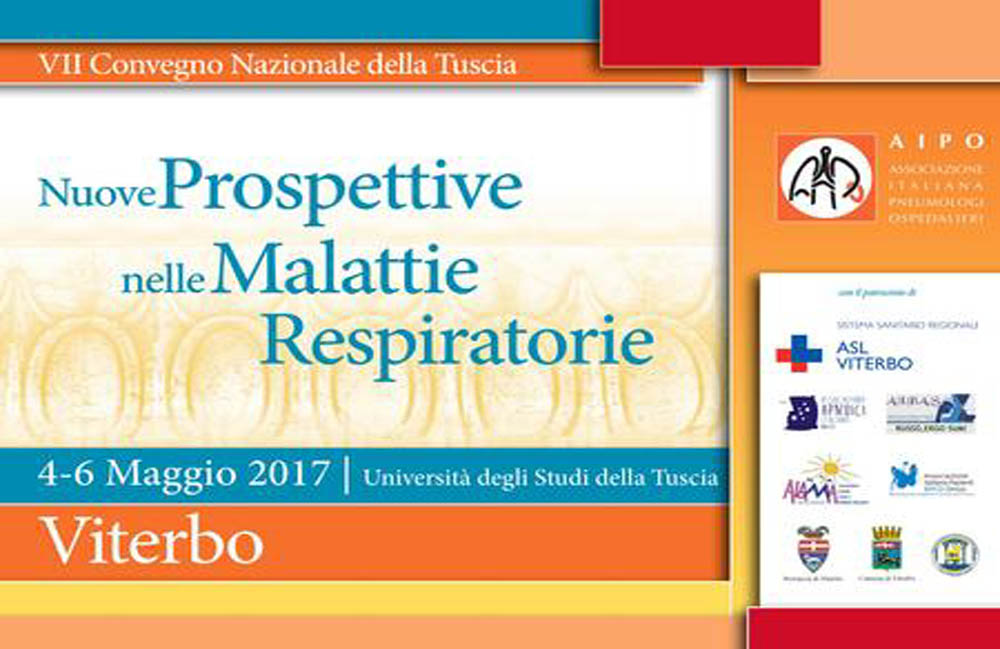 Da giovedì 4 a sabato 6 di maggio, presso l’aula magna dell’Unitus si svolgerà il settimo convegno nazionale della Tuscia, Nuove prospettive nelle malattie respiratorie. L’iniziativa è realizzata da Aipo, Associazione italiana pneumologi ospedalieri, con il patrocinio della Asl di Viterbo.