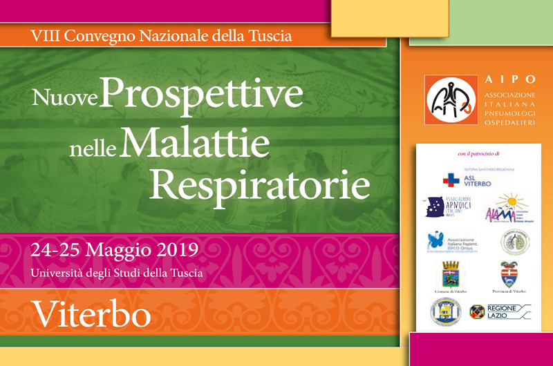 Venerdì 24 e sabato 25 di maggio, presso l’auditorium dell’università della Tuscia, si svolgerà l’ottavo Convegno nazionale della Tuscia, nuove prospettive nelle malattie respiratorie. L’iniziativa è realizzata da Aipo, Associazione italiana pneumologi ospedalieri, con il patrocinio della Asl di Viterbo.