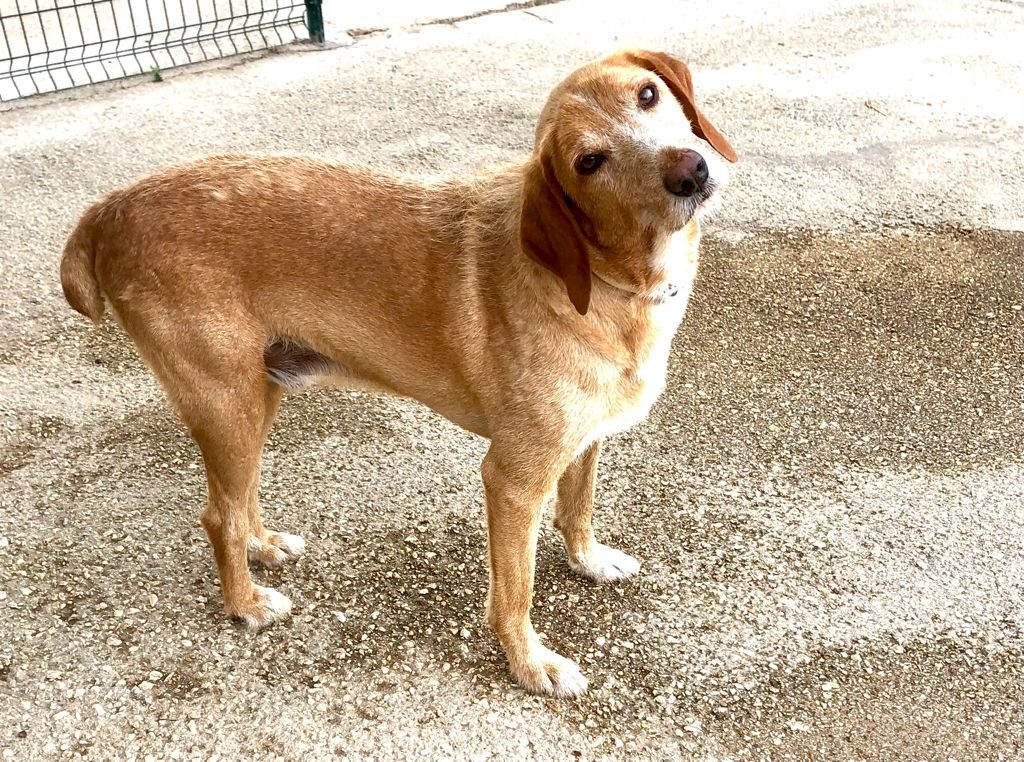 Oki è entrato in canile tre anni fa. E’ un segugio maremmano a pelo duro, di circa 5 anni, probabilmente abbandonato perché non adatto alla caccia.