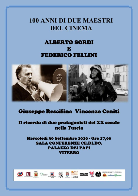 Un nuovo omaggio, in occasione del centenario della nascita, al maestro Federico Fellini e al grande attore Alberto Sordi, che hanno scelto la Tuscia per girare importanti film, si svolgerà domani, mercoledì 30 settembre alle ore 17 presso la sala conferenze del