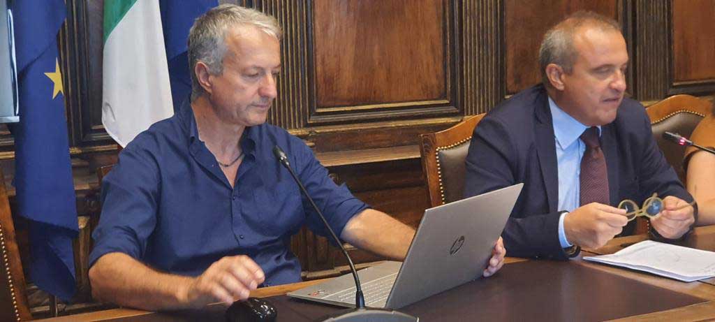 Semplicemente “Ombre festival”, poi, se vai a leggere oltre il titolo principale, c’è molto, ma molto di più: spettacoli e racconti in giallo, musica, incontri, performances. “Perchè tutto ciò che è intrigante accade nell’ombra”, recita il sottotitolo della rassegna che si svolgerà dal 20 al 30 luglio a Viterbo e dal 22 al 30 luglio a Bagnoregio. “Un festival in due”, commento a caldo, rubato nella sala del Consiglio comunale di palazzo dei Priori dove si tiene la conferenza stampa di presentazione. Due scenari prestigiosi in due Comuni che tornano a fare coppia dopo nove anni e che si propongono di fare soprattutto spettacolo con l’obiettivo di sviluppare qualità della cultura e senso della legalità collettiva e individuale. Tre i luoghi deputati dall’amministrazione comunale viterbese per le rappresentazioni più rilevanti: piazza San Lorenzo, Piazza del Gesù, piazza della Repubblica. Piazza Falcone e Borsellino ospiterà gli spettacoli a Bagnoregio. Programma robusto, di altissimo pregio, oltre tutto da irrobustire con probabili new entry. Quindi, non ancora definito nella sua interezza. Ma si può già dire che saranno del festival, tra gli altri, l’attuale ministro degli Interni Matteo Piantedosi; il magistrato e saggista Nicola Gratteri; l’indimenticabile musica di Ennio Morricone; tanto jazz in piazza del Gesù; addirittura quel che resta dell’auto della scorta di Giovanni Falcone dove perse la vita 31 anni or sono anche l’agente Antonio Montinaro, la cui moglie, Tina, sarà pure presente a Viterbo, in piazza del Plebiscito. Di tutto e di più, insomma, all’ombra delle Ombre, ci si passi il gioco di parole. “Abbiamo allestito questa rassegna con lo scopo primario di raggiungere tutti gli ambienti del sociale attraverso i canali della cultura e della legalità”, spiega Alessandro Maurizi, presidente e direttore artistico dell’associazione delle Ombre. Al tavolo i sindaci di Viterbo Chiara Frontini e di Bagnoregio Luca Profili, oltre al questore Fausto Vinci, all’assessore alla cultura del Comune di Viterbo Alfonso Antoniozzi, al presidente del Consiglio comunale di Bagnoregio David Crescenzi. “Questo evento, allestito in naturale joint venture con Bagnoregio, contiene per noi tre messaggi: accrescere l’attenzione sul tema della legalità, far risorgere un festival che pure era già importante, rinsaldare il rapporto tra la nostra città e quella che fu di Bonaventura”, sottolinea la sindaca. Il primo cittadino di Bagnoregio accoglie e rilancia l’alleanza nel segno di una collaborazione nata già nove anni addietro e che soltanto il Covid ha temporaneamente paralizzato.