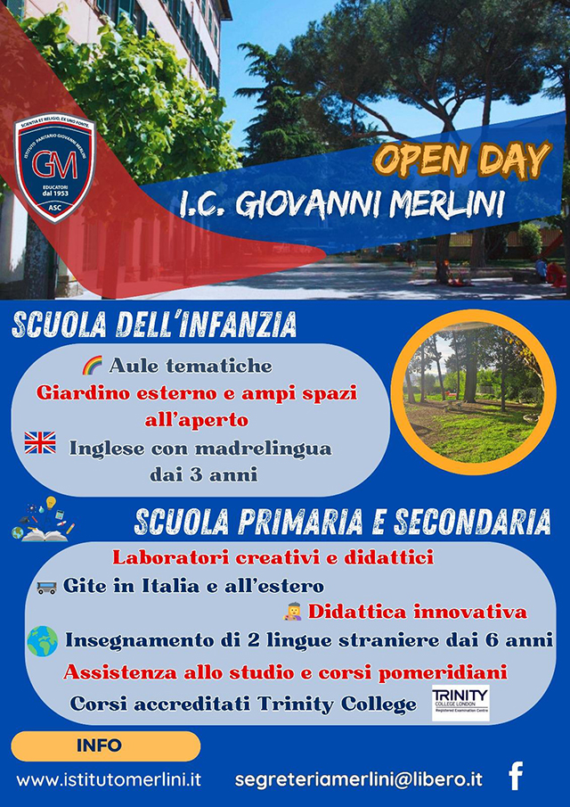 “Nell’ottica della pluralità di scelta la nostra scuola risponde con qualità, competenza, passione, rispetto, empatia a tutte le richieste di formazione della società odierna. Vi aspettiamo numerosi”. Così dall’Istituto Merlini.