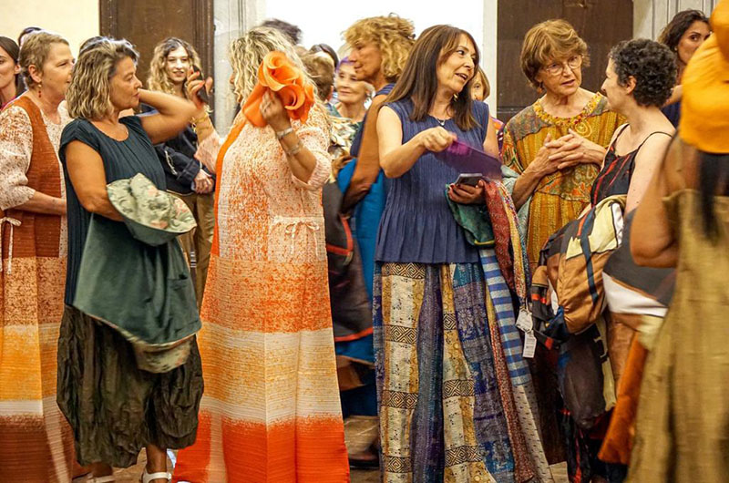 Metti una sera di metà agosto una sfilata a Oriolo sullo sfondo di Palazzo Altieri. A luglio Graziella Lombi, presidente dell’associazione Spazio Supporto Donna, con un vocale mi invita a sfilare per una buona causa e io dico di sì, ma poi non ho più nessuna notizia, al che mando un whap  e chiedo se il 12 agosto c’è ancora la sfilata. “Vieni stasera a Palazzo Altieri alle 20”. Vado e subito, durante i preparativi, respiro un’atmosfera carica di empatia, simpatia, serenità tra donne che non avevo mai incontrato e subito si crea una voglia di stare insieme, di condividere, di sorridere.
