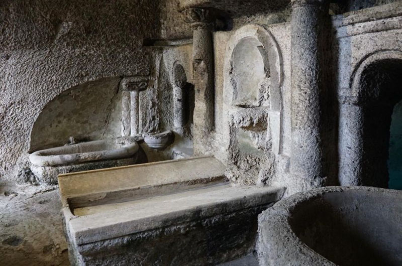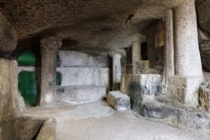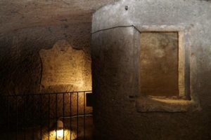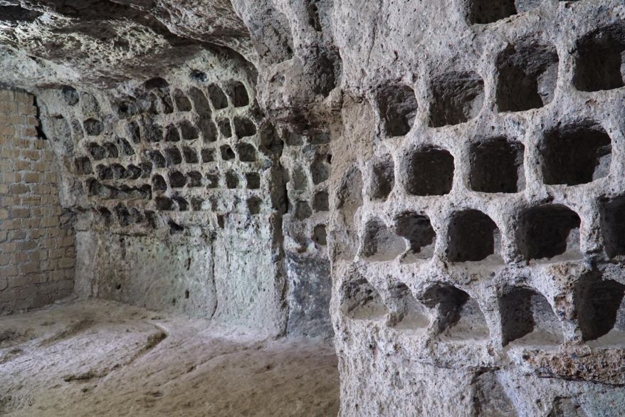 Attraversata la porta del Vascellaro, siamo nel cuore pulsante del borgo di Orte, città antichissima della Tuscia, che vanta la presenza dell’uomo, ininterrottamente dall’età del bronzo fino ai giorni nostri. Ad aspettarci sulla piazza della Libertà dove si erge la Cattedrale il giovane archeologo Giancarlo Pastura, sciarpa zuccotto, e un sorriso amichevole ci condurrà nei meandri di questo antico borgo, da sempre crocevia di popoli e storie. All’interno della rupe dove sorge il paese, nel corso dei secoli sono state ricavate una fitta rete di cunicoli per il rifornimento idrico, cisterne, pozzi, magazzini, cantine, stalle, colombaie laboratori artigianali. L’insieme di questo dedalo e visitabile grazie al complesso “Orte Sotterranea” , in sintesi un viaggio attraverso i secoli nelle viscere della rupe. Prima tappa, un luogo suggestivo e unico il “Ninfeo rupestre” aperto sulla rupe meridionale di Orte non ha eguali nel resto della provincia e tra i pochi rimasti nell’Italia centrale, questo complesso è datato tra la fine del XV e gli inizi del XVI, secolo si può tranquillamente classificare tra i siti detti “luoghi della delizia” diffusi nei giardino all’Italiana. Rimane intatto il fascino di questo luogo magico, dove sembra ancora risuonare lo scrosciare dell’acqua. Seconda Tappa la visita le “Colombaie”, costruzioni medioevali nate per l’allevamento i piccioni ad uso alimentare vista la presenza di viandanti e pellegrini da dover sfamare. Tale pratica fu regolamentata da apposite norme negli statuti comunali. Le pareti della colombaia accolgono le nicchie per i piccioni, poco profonde e di forma quasi regolare, disposte su più file. Terza tappa, la più impegnativa della visita, è quella senza dubbio la più affascinante dell’intero percosso che propone “Orte sotterranea”, qui veramente si entra nel vivo dell’esperienza, tra cunicoli per il rifornimento idrico costruite dai Romani che si intersecano con quelli fatti dagli Etruschi, concepiti per recuperare dalla roccia tufacea l’acqua piovana infiltrata nella roccia, lungo il percorso si aprono in vasche di raccolta e cantine un tempo utilizzate dai proprietari delle case soprastanti, un percorso da non perdere. Ultima tappa della nostra escursione “Il Pozzo della neve” che si trova all’interno di un complesso di sotterranei di servizio degli antichi Ospedali Riuniti di Orte si tratta di una rarità, arrivata fino a noi, la neve veniva raccolta in blocchi compatti, avvolti interamente nella paglia e portata con i carri a Orte dai Monti Cimini, qui veniva depositata dentro il pozzo e chiusa con delle botole. La conservazione, garantita da un inverno all’altro, refrigerava il locale le derrate e i medicinali che vi erano custoditi. Il tempo è tiranno, purtroppo non ci permette di visitare: il museo delle confraternite, il museo civico e il museo di arte sacra sicuramente oggetto di una prossima visita, insieme alla processione del Cristo morto del Venerdì Santo, che cii raccomandano assolutamente di non perdere.
