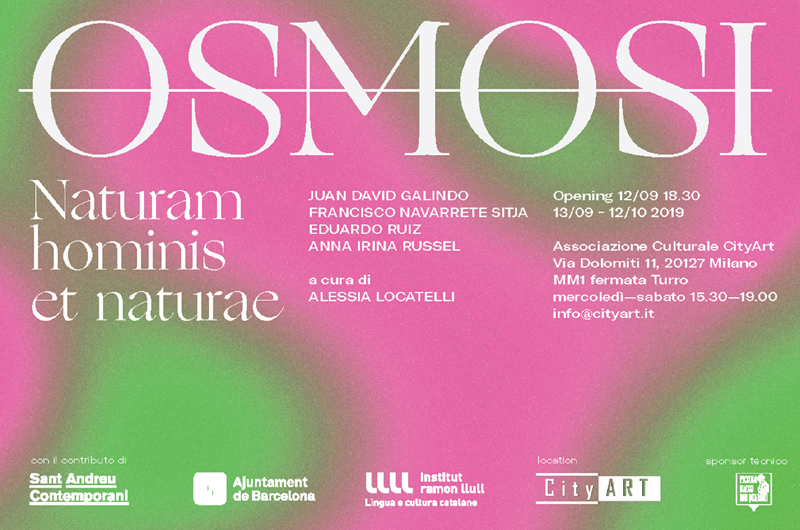 Osmosi affronta una riflessione contemporanea sul tema dell’equilibrio Uomo-Natura. La collettiva d’arte contemporanea inaugura il 12 settembre 2019 presso gli spazi di CityArt in via Dolomiti 10 a Milano e resta aperta per un mese. I 4 artisti invitati – Juan David Galindo, Francisco Navarrete Sitja, Eduardo Ruiz e Anna Irina Russell – porteranno un’opera che riflessiona sul tema attraverso l’approccio a differenti modalità di linguaggio e materiali.