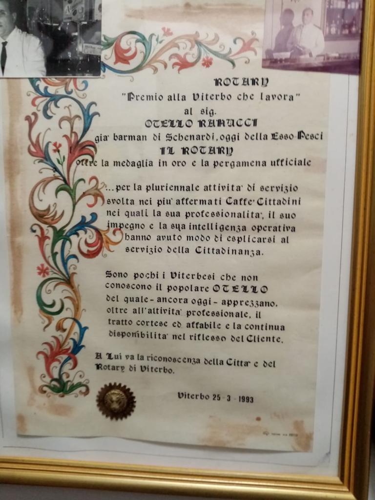 Lucidissimo, vive nel suo amato quartiere Pilastro a Viterbo con i due figli Paolo e Giovanni, del suo lavoro ha conservato la gentilezza e il garbo, connotati che in coloro che lo hanno conosciuto ne lasciano un indelebile ricordo. Ricordi che affiorano dalla sua memoria evocando un vissuto lavorativo pieno d’orgoglio in quel locale storico che nel XVIII secolo è stato il luogo di ritrovo per intere generazioni. Negli anni del secondo dopoguerra soprattutto il sabato e la domenica il Caffè Schenardi, datato 1818, a Viterbo era la meta dei viterbesi e dei passanti illustri per gustarsi un aperitivo creato dai barman di allora, di cui Otello Ranucci e gli altri colleghi non hanno mai voluto rivelare  la mescolanza, stiamo parlando del mitico 103. Una serata a tema “La notte del 103”  organizzata dal Gran Caffè Schenardi nel maggio del 2016  lo vide presente insieme ad alcune delle figure che avevano attraversato quel magico percorso, che Otello ricorda ancor oggi con gli occhi lucidi e con quel suo garbo riverente che sono la combinazione che il gentiluomo ha reso al suo lavoro rendendolo speciale. Oggi di quegli anni rimane ben poco, ma il sogno di Otello è quello di vedere riaperto il Gran Caffè Schenardi, lustro della sua amata Viterbo. “Schenardi deve  continuare a rappresentare il luogo per eccellenza della socialità, la sua riapertura può rianimare un centro storico troppo spento. Speriamo che il nuovo responsabile sia un o una viterbese, giovane che ne preservi la sua storia e abbia il tempo che serve per riorganizzarlo. Mi piacerebbe esserci”.