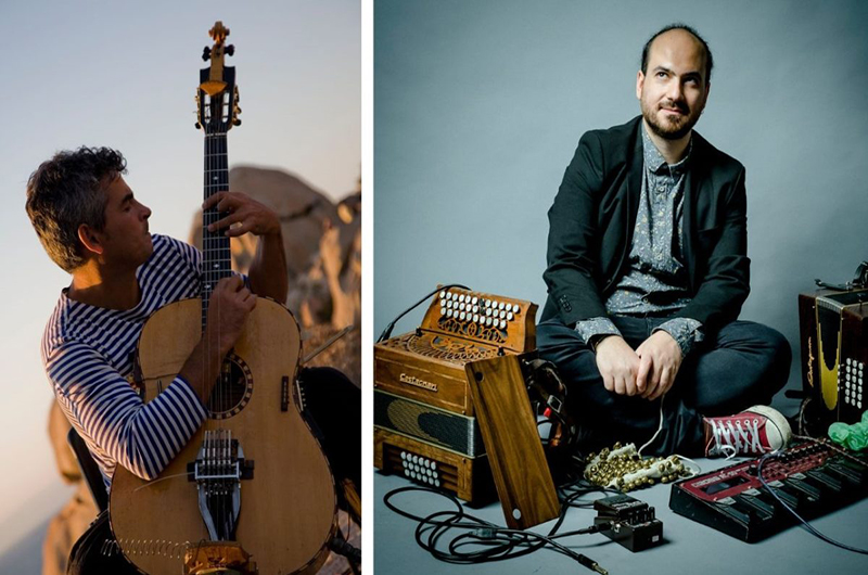 Il primo progetto, stimolato e sostenuto dal festival, sarà presentato venerdì 28 luglio alle ore 21.30. Basato sull’interazione artistica in corso tra Paolo Angeli, con chitarra sarda preparata ed elettronica, e Alessandro D’Alessandro, con organetto preparato ed elettronica (nella foto). Il loro dialogo musicale, introdotto da due monologhi, prevede l’utilizzo di strumenti che nascono dalla tradizione popolare e che progressivamente sono stati trasformati in apparati sonori inediti e innovativi, con caratteristiche tecniche ed espressive in costante sviluppo.