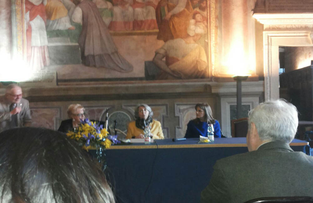 Era gremita soprattutto al femminile la sala Regia del Palazzo dei Priori mercoledi 8 marzo pomeriggio per la «Vies en Rose» (Vite in rosa),un appuntamento organizzato dal Centro studi santa Rosa di Viterbo, dall’amministrazione comunale e dal santuario viterbese affidato alle suore francescane alcantarine, con il contributo di Soroptimist International. Ad aprire l’incontro Daniela Bizzarri, la combattiva consigliera comunale con delega alle pari opportunità e Attilio Bartoli Angeli, presidente del centro studi. Maria Teresa Brolis Storie ha presentato il libro sulle donne nel Medioevo (Bologna, Il Mulino, 2016, pagine 170, euro 18). Un presente sindaco Michelini a fare gli onori di casa. Del libro ha parlato Maria Giuseppina Muzzarelli, dell’università di Bologna.Poi sono sesseguite le «Storie di donne viterbesi», nove racconti di donne (antiche e moderne) che hanno legato il loro nome alla città. Ippolita Checcoli ha presentato “la bella” Galiana, Francesca Pizzaia la santità di Rosa, Antonio Ciaralli la strega Margherita, Filippo Sedda l’ebrea Matteuccia, Cinzia Pasqualetti la fondatrice Giacinta Marescotti, Luca Salvatelli la leggendaria Pimpaccia, e cioè Olimpia Maidalchini, Eleonora Rava, Maria Ciofi, Paola Spolverini la crocerossina Alba Bonucci, e infine Serenella Papalini l’imprenditrice Nadia Benedetti, una delle vittime dell’attentato di un anno fa a Dacca.
