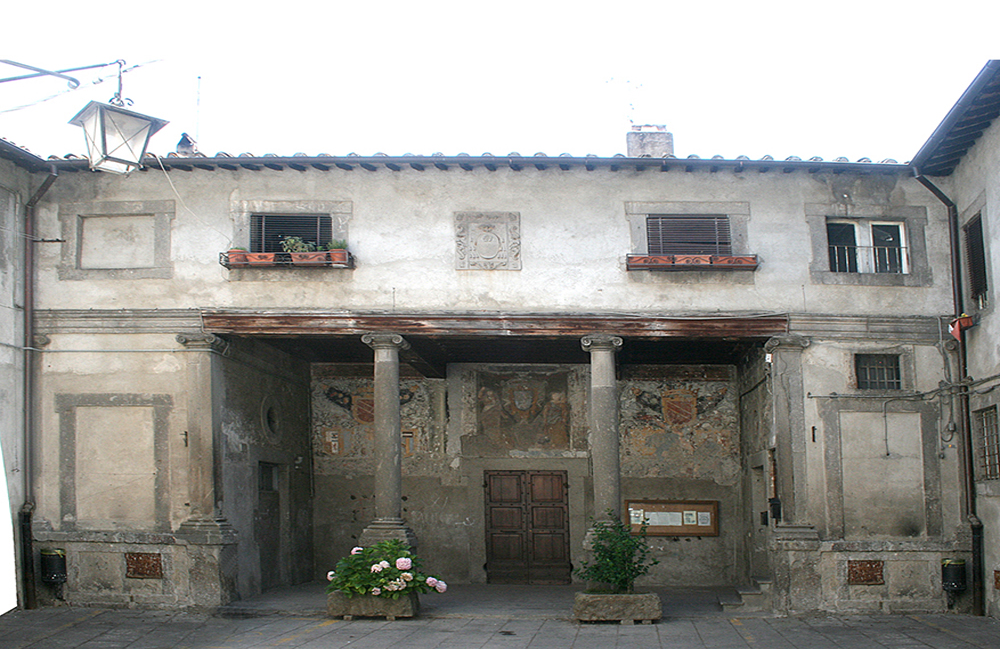 Sopra il portone d’ingresso è presente un affresco che esalta la gloria del cardinale Antonio Barberini, signore di Bagnaia dal 1642 al 1645, con una scritta in latino “al tempo suo giustizia e abbondanza”ed ai lati due giovani donne che recano la bilancia e la cornucopia.
