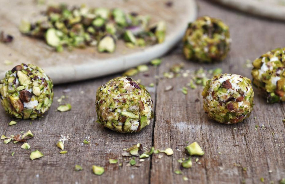 Con le mani fate delle palline del diametro di circa 5-6 cm e fatele rotolare nella granella di pistacchi.