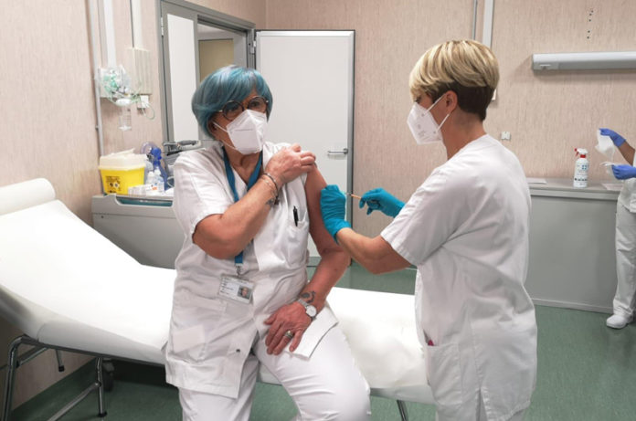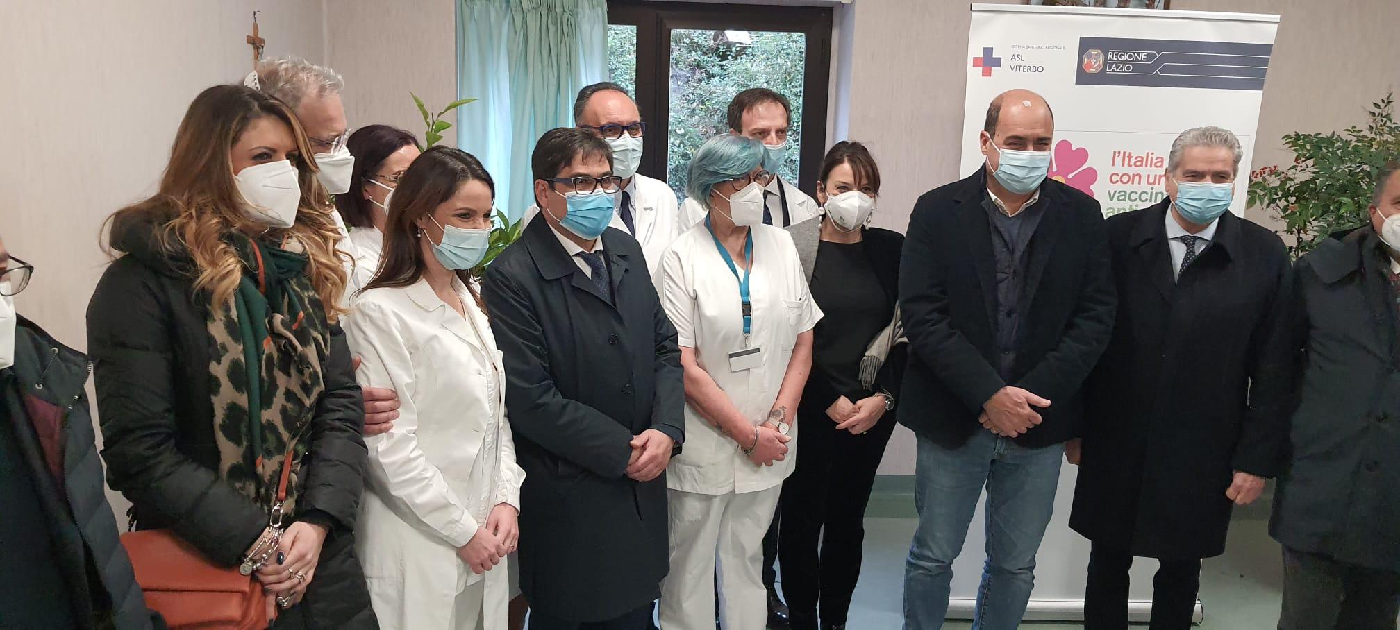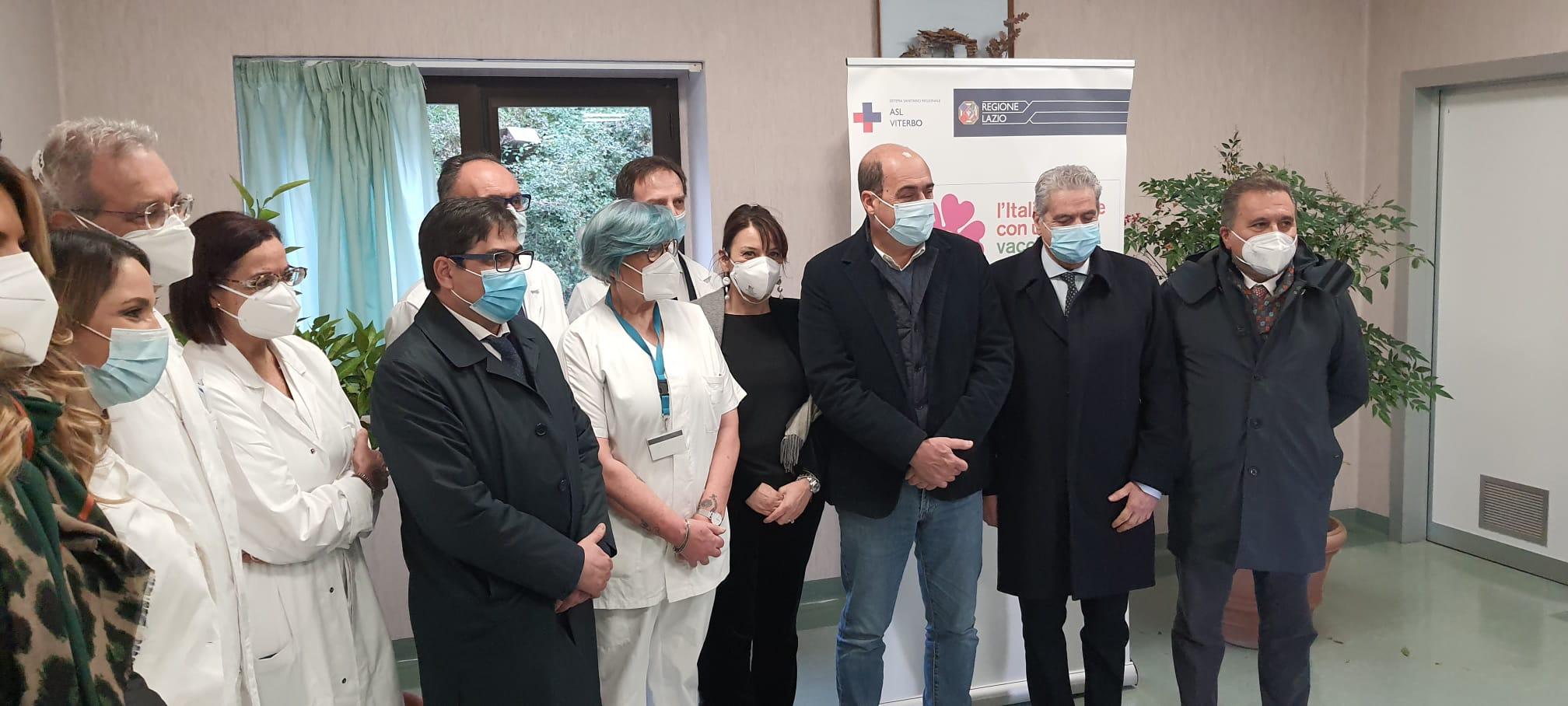 “Faccio l’infermiera da 40 anni e voglio andare in pensione”. La battuta di Paola Perugi, la prima vaccinata della Tuscia, è accompagnata da un sorriso di speranza e di gratitudine. Paola Perugi passerà agli annali della storia sanitaria della provincia come il primo momento di riscossa nei confronti di quel nemico acerrimo e subdolo che si chiama Covid. Riscossa, ma non vittoria, come sottolinea in conferenza stampa il presidente della Regione, Nicola Zingaretti, che con l’assessore alla Sanità Alessio D’Amato, sale all’ospedale viterbese di Belcolle per dare il via alla campagna di vaccinazione nel Lazio. “Attenzione – avverte il governatore – perché oggi intravediamo la luce in fondo al tunnel. Nel tunnel però ancora ci siamo e ci resteremo per alcuni mesi. Cominciamo a capire che finirà”. Un avvertimento e un “grazie” a tutti coloro che in questo periodo hanno lottato per salvare vite umane, primi tra tutti i componenti del sistema sanitario regionale che ha permesso di limitare il numero dei decessi: “Siamo tra le regioni che più sono rimaste in zona gialla”. Ora, appunto, è venuto il tempo di reagire, di ripartire, attraverso l’arrivo di un alleato formidabile come quello dei vaccini. Il timing del contrattacco è già partito. A illustrarlo con i numeri il responsabile regionale alla Sanità D’Amato: 955 le dosi già messe a disposizione in tutte le strutture del Lazio, 40 soltanto per quella di Viterbo; da domani le dosi arriveranno a quota 44.000, 1.800 esclusivamente per la Asl del capoluogo; serviranno poi 5 settimane per completare l’organico degli operatori sanitari che procederanno alla vaccinazione di massa fino ad arrivare alla cosiddetta immunità di gregge. Una battaglia che è cominciata ormai da quasi un anno e che può portare alla fine sospirata della guerra soltanto se si riuscirà a fare squadra. “Come del resto – sottolinea il sindaco di Viterbo, Giovanni Arena – è stato fatto, grazie anche alla grande disponibilità dimostrata dalla Regione. Abbiamo lottato tutti insieme, ma adesso è il momento di serrare ancor più le file”.