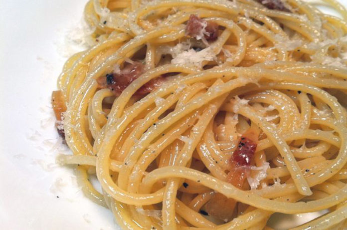 Gli spaghetti rappresentano il formato originario, solo nell’800 viene introdotto il pomodoro alla ricetta per diventare Amatriciana.