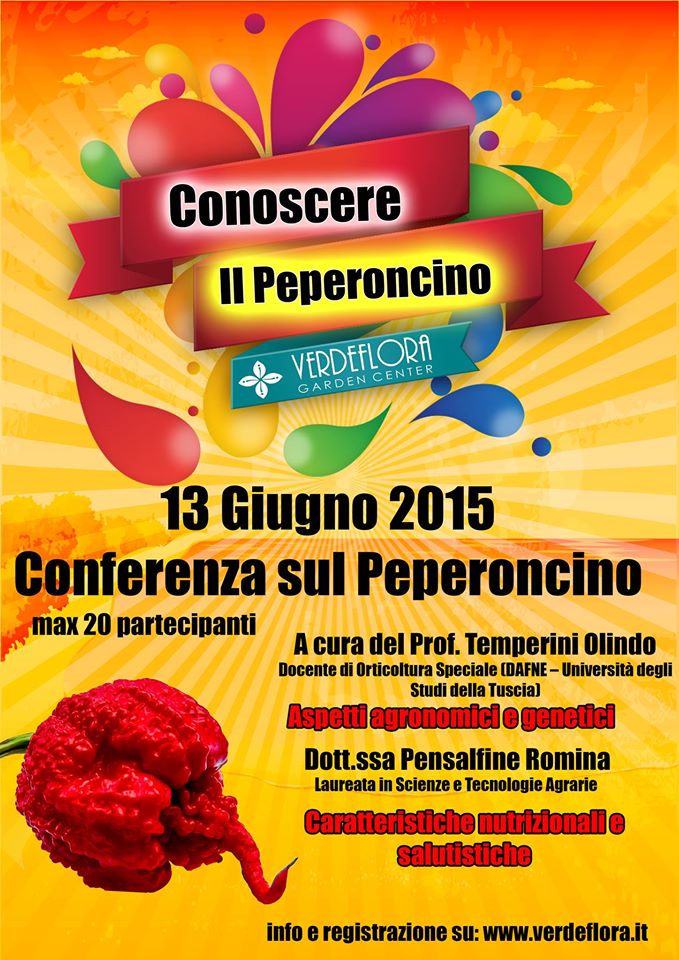 Per far conoscere le tantissime varietà esistenti di peperoncino provenienti da tutto il mondo, dai colori e dalle forme più bizzarre, e i benefici che da esso derivano, Verdeflora Garden Center a Fabrica di Roma promuove una mostra-conferenza che si terrà sabato 13 giugno alle 17 presso il vivaio in via Falerina 9 a Fabrica di Roma.
