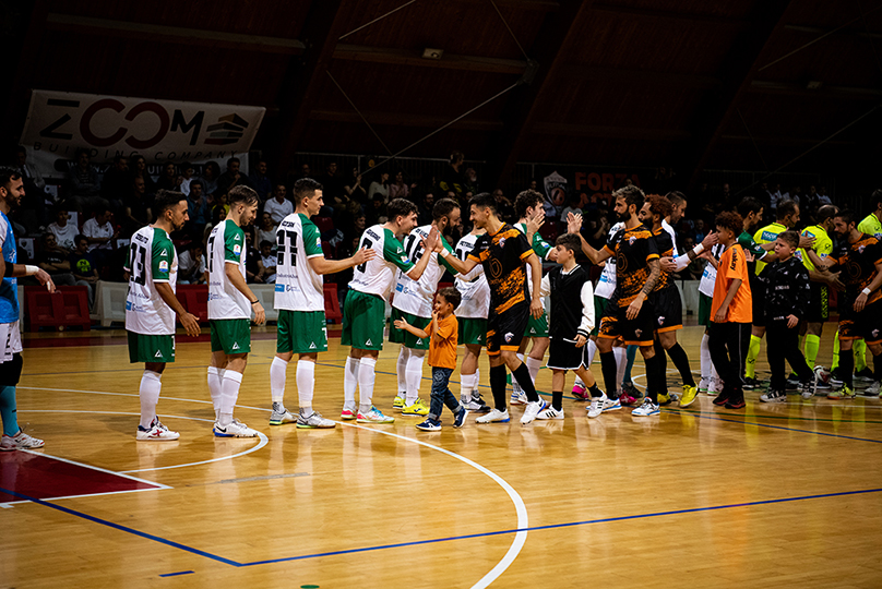 L’avvio di gara è tutto di marca viterbese che dopo appena 2’55’ trova il meritato vantaggio con Igor, che con un destro preciso dalla distanza beffa l’incolpevole Parisi. Esplode il Palazzetto di Orte, che dopo 5’48’’ esulta un’altra volta quando il “mago di Fabriano” Lamedica trova un diagonale vincente che supera ancora una volta Parisi, non esente da colpe in questa circostanza. Basile chiama time-out per cercare di dare la scossa ai suoi e la risposta arriva con la traversa colpita da Hozjan che fa tremare i viterbesi. Thiago Perez, ex di turno, sale in cattedra con almeno tre interventi prodigiosi e salva i suoi portandoli al riposo sul doppio vantaggio.