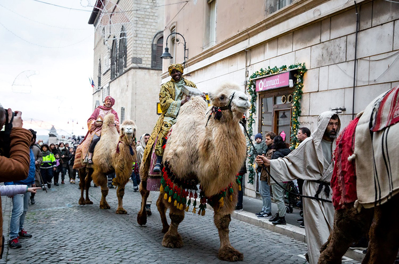 Per l’Epifania i re magi a dorso di cammello arrivano al presepe vivente di Tarquinia
