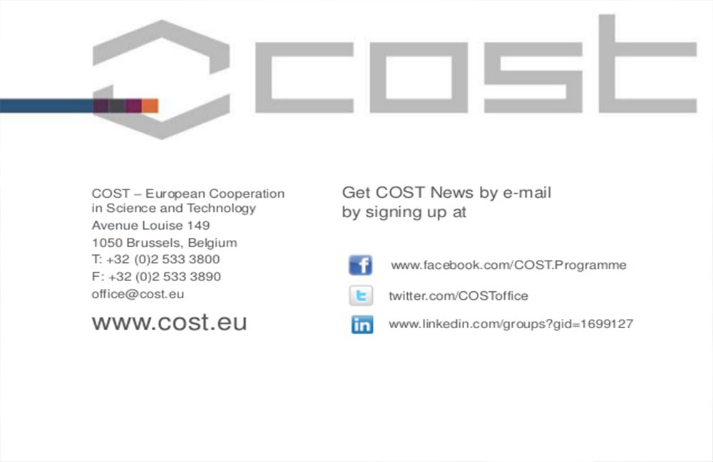 COST (Committee of Senior Officials )  (http://www.cost.eu) è un importante organismo intergovernativo che sostiene la collaborazione transnazionale tra ricercatori europei. L’iniziativa COST è nata nel 1971 come quadro intergovernativo di cooperazione europea nella ricerca scientifica e tecnologica. In totale gli Stati aderenti sono 35.