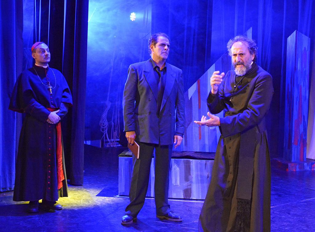 Pino Quartullo e Isabel Russinova in “Todo Modo” di Sciascia al Teatro Rossella Falk di Tarquinia