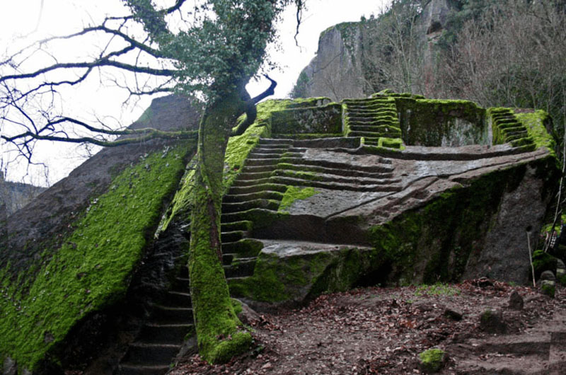 Una visita guidata domenica 21 marzo nel territorio di Bomarzo in cui si trova uno dei manufatti antichi più monumentale, la cui funzione deve essere ancora compresa appieno: si tratta della celeberrima “Piramide”,  realizzata con uno dei numerosi massi staccatisi dalla sovrastante rupe di peperino e rotolati lungo il fianco della valle.  Presenta ventisei gradini alti e profondi che si raccordano, più in alto, con un’altra scalinata che conduce ad un probabile altare, ricavato alla sommità della roccia, che così lavorata assume una forma simile ad una piramide.
