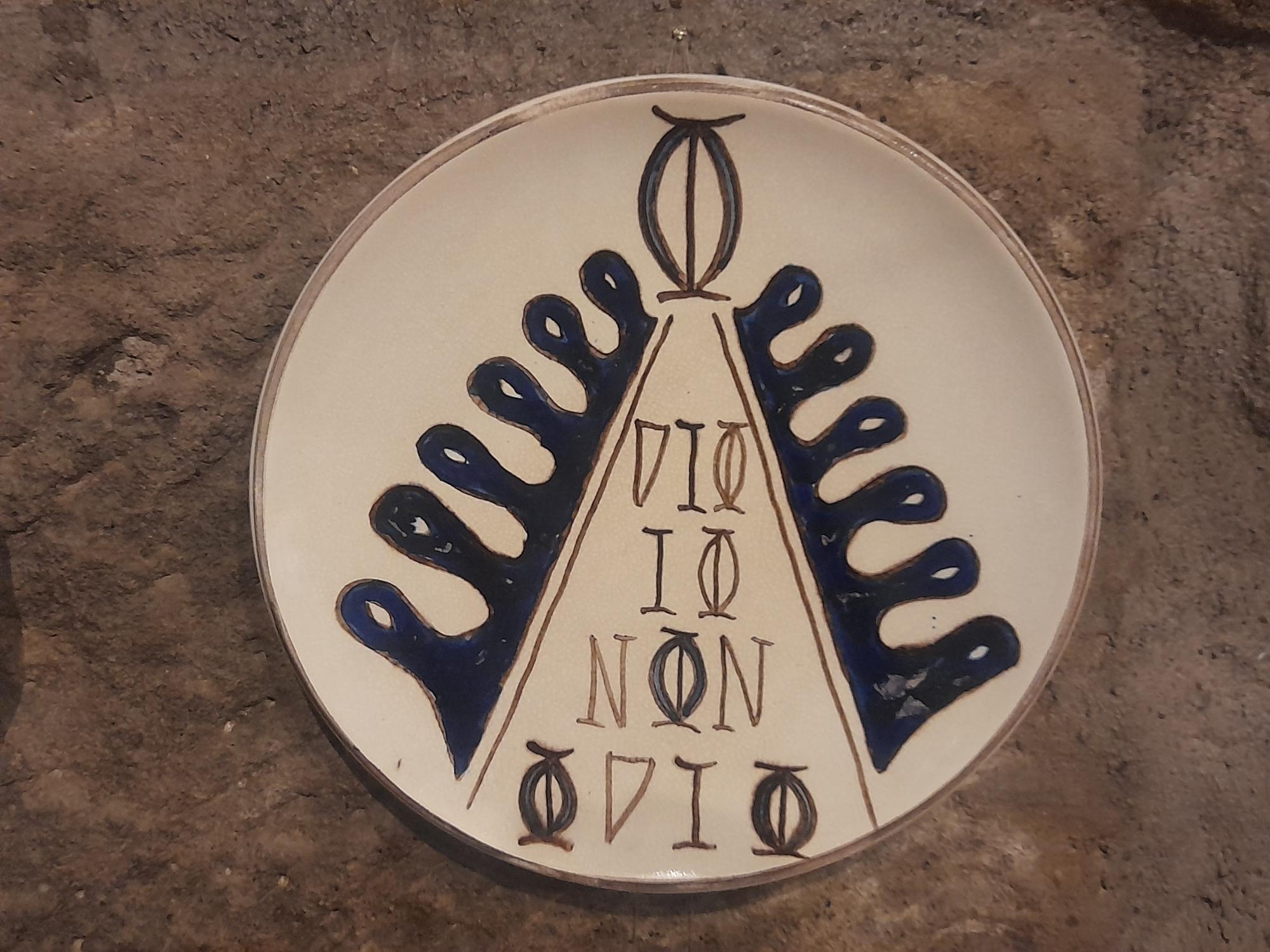 Sempre nel cuore del suggestivo quartiere medievale di San Pellegrino, Cinzia Chiulli propone quest’anno un’ode all’amore con un angelo blu realizzato con la tecnica della Zaffera. Le ali dell’angelo sono composte da foglie di quercia sezionate, mentre il corpo è attraversato dall’invocazione ‘O Dio Io Non Odio’. La testa dell’angelo, che evoca anche una fiamma portatrice di luce, è contrapposta alla parola ‘Odio’, situata alla base, come una preghiera per coltivare la parte più alta e spirituale, lasciando le bassezze umane nella parte più buia e distante da noi.