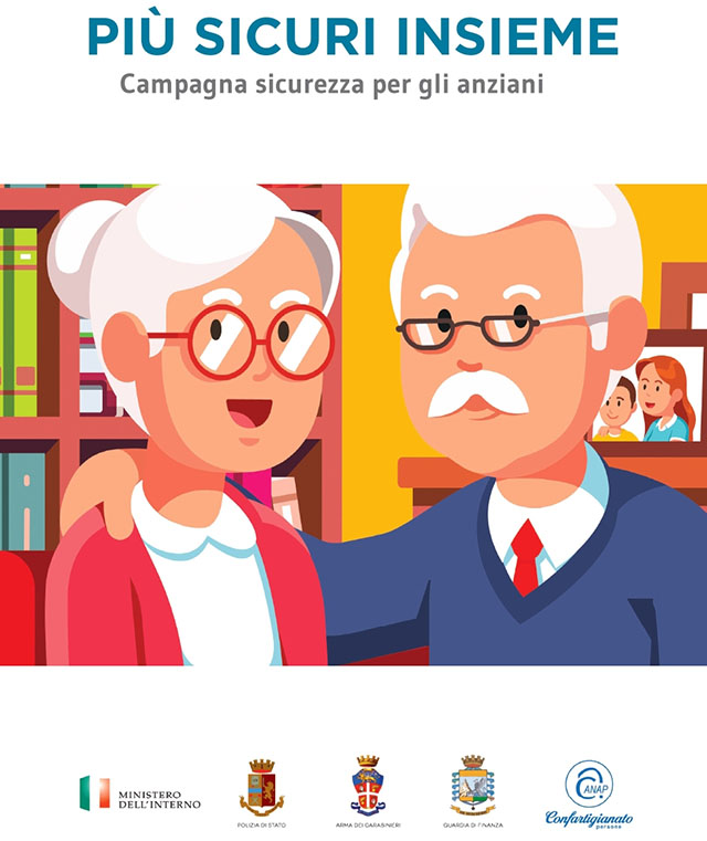 Continua anche per il 2024 la campagna “Più sicuri insieme” di ANAP Confartigianato persone contro le truffe agli anziani che, grazie alla collaborazione con ministero dell’Interno, il Dipartimento della pubblica sicurezza – Direzione centrale della polizia criminale, il contributo della Polizia di Stato, dell’Arma dei carabinieri e della Guardia di finanza, da anni si occupa di sensibilizzare la popolazione anziana sul tema della sicurezza, fornendo informazioni e consigli utili per difendersi dai malintenzionati e per prevenire i reati.