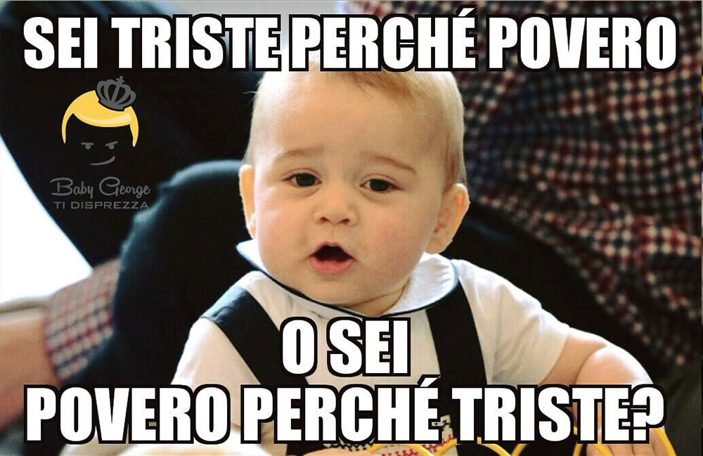 Sono stati per primi gli inglesi a ideare i <<meme>> sarcastici sul principino, dando origine ad un vero fenomeno da social ,non solo in Italia. La pagina italiana oggi conta 635.346 likes, la crescita  media è di 15.000 likes al mese. La vignetta più popolare è stata vista da 4 milioni e mezzo di persone. Questa folla di ammiratori ha dato via ad una campagna di pubblicizzazione del marchio, è possibile infatti comprare t-shirt, gadget e cartoline con le ironiche <<meme>>. La pagina è stata recensita da giornali e riviste come: il Corriere della Sera, Panorama, Il secolo XIX e Vanity Fair.