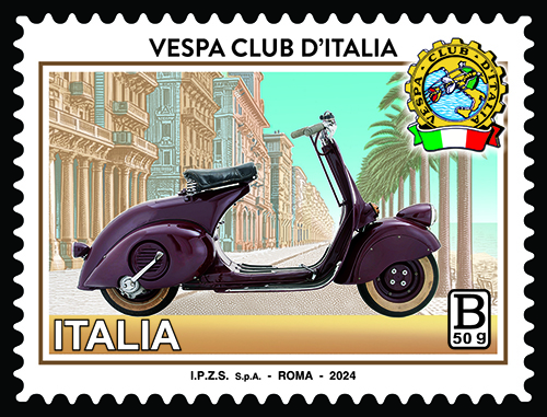 Poste Italiane comunica che sabato20 aprile 2024, viene emesso dal Ministero delle Imprese e del Made in Italy un francobollo ordinario appartenente alla serie tematica “il Patrimonio artistico e culturale italiano” dedicato al Vespa Club d’Italia, relativo al valore della tariffa B 50g pari a 2,75€. Emissione congiunta con la Repubblica di San Marino.