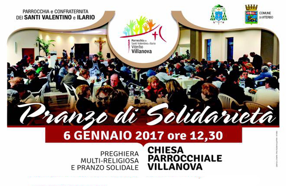 Anche quest’anno il 6 gennaio 2017 si rinnova presso la chiesa di Villanova il pranzo di solidarietà per i poveri. La chiesa si trasformerà in una sala da pranzo dove tutti potranno unirsi nella solidarietà e nell’amicizia.