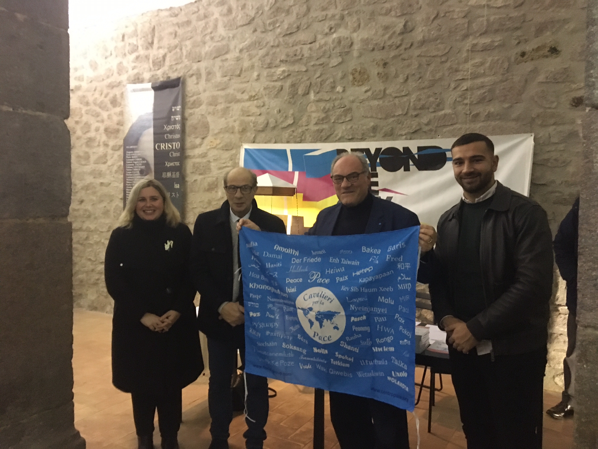 Quest’ultimo ha insignito l’Associazione Premio Centro, attiva da 12 anni nel mondo dell’Arte e della Cultura, della Bandiera dei Cavalieri per la Pace nel Mondo, ricerca di pace che diventerà punto di riferimento nel tempo futuro della stessa organizzazione.