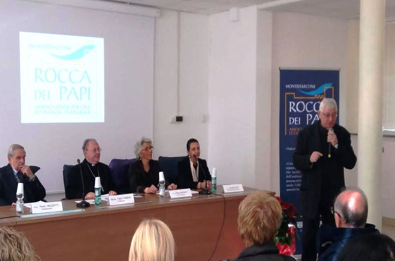 Partito da Montefiascone un ambizioso progetto di valorizzazione del territorio della Tuscia e di sensibilizzazione sui temi della ecologia integrale. Dopo i saluti del direttore di Villa Santa Margherita, Padre Terenzio, gli interventi si sono aperti con la relazione del presidente dell’associazione, monsignor Fabio Fabene, Sottosegretario del Sinodo dei Vescovi. “Il 24 giugno 2014 Papa Francesco ha pubblicato l’Enciclica Laudato si’ sulla cura della casa comune – ha illustrato -nella quale denuncia il grave stato di degrado della Terra e propone l’ecologia integrale come metodo per la soluzione della crisi ambientale. L’Associazione Rocca dei papi, che è nata ed ha sede nella città di Montefiascone, ha come finalità di promuovere la cultura della ecologia integrale, valorizzando il territorio della Tuscia, che ha una sua peculiarità ed è ancora ben conservato dal punto di vista paesaggistico e ambientale. In particolare si vuole tener presente il bacino del lago di Bolsena per i suoi aspetti geomorfologici, storici, culturali, antropologici e della tradizione religiosa e non ultimo per i suoi incantevoli paesaggi che possiamo ammirare da ogni suo angolo e soprattutto dall’alto della Rocca dei Papi”.