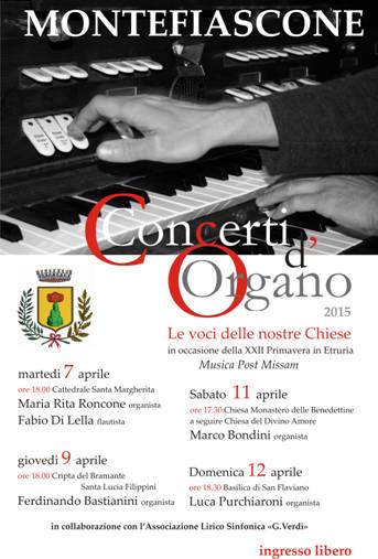 Concerti d’organo e presentazione di libri a Montefiasone per la manifestazione Primavera in Etruria