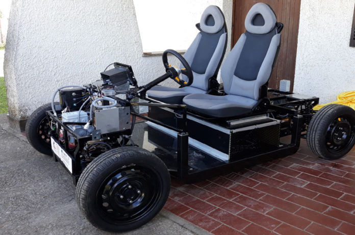 Di che si tratta nel dettaglio? Di un powertrain elettrico total green a quattro ruote motrici indipendenti, super efficiente e sicuro, perfetto per i piccoli spostamenti in città. Le batterie sono al litio e BMS. Il che significa che, oltre a essere affidabili, sono soggette a minima usura e a carica uniforme. C’è inoltre un inverter di trazione che garantisce lo sfruttamento ottimale dei motori. L’uso del Canbus, canale su cui circolano le informazioni del veicolo, permette controlli di bordo e anche la possibilità di futuri miglioramenti di funzioni o componenti del veicolo. Il Canbus permette infatti a chi guida di essere informato, tramite tablet, riguardo lo stato del veicolo ma permette anche di implementare l’app per la funzione del calcolo dell’autonomia residua. Il tutto in tempo reale. È stato proprio OPV Solutions S.r.l. a occuparsi della realizzazione del “sistema tablet”, attività per la quale si è avvalso della consulenza della Siralab Robotics S.r.l. Ma che cosa si intende per “Sistema tablet”? Significa che per il powertrain è stata sviluppata un’app in grado di visualizzare i dati di funzionamento del veicolo, per esempio quelli relativi all’autonomia, ma anche quelli della retrocamera per assistenza al parcheggio. La ciclistica del mezzo è stata realizzata dal gruppo di Ingegneria dell’Università degli Studi della Tuscia che, dopo una serie di simulazioni su handling e sospensioni, ha valutato e migliorato la risposta delle sospensioni in varie condizioni di guida e di fondo stradale. Per esempio su fondi aderenti ma sconnessi o su fondi con poca aderenza, ovvero su tutti quei tipi di strada che si incontrano normalmente quando si guida in città. Il tipo di centralina utilizzata, VMU – Vehicle Management Unit – è in grado, tramite sensori e attuatori, di implementare la tecnica di torque-vectoring sulle quattro ruote. Proprio grazie a quest’ultimo sistema, è possibile la costante acquisizione della velocità, della velocità di imbardata e dell’angolo di sterzo impostato dal pilota, così che, attraverso una centralina, è possibile calcolare la traiettoria desiderata e quella seguita. Ma non è tutto: c’è anche la possibilità di intervenire per migliorare la guida ed evitare sbandamenti. Di ultima generazione, innovativo, sicuro, altamente tecnologico e dotato di sistema di condizionamento che garantisce il minimo dispendio energetico. Il Be Positive, poi, ha anche un telaio degno di nota. Realizzato da PLP Meccanica S.r.l. e Pro-Lite S.r.l, il design del powertrain, formato da componenti in acciaio e materiale composito con inserti di schiume metalliche, è basato sull’assemblaggio componenti definite e questo, in un’ottica di industrializzazione del prodotto, significa una cosa molto importante: contenimento dei costi. La parte più divertente? Sul telaio potranno essere aggiunte varie scocche che più rispecchino i gusti del conducente. Ognuno, in pratica, potrà “vestire” il proprio quadriciclo come preferisce. Un veicolo piccolo, leggero, sicuro e, soprattutto, a basso consumo, che tiene conto della potenza elettrica a bordo disponibile .Degne di nota le prestazioni energetiche curate dall’Università degli Studi della Tuscia: la ricarica del powertrain è total green, il che significa sostenibilità dal punto di vista ambientale senza però trascurare l’aspetto della sicurezza (garantita dal telaio). Ma come si ricarica? Il powertrain utilizza pannelli al seleniuro di rame indio gallio (CIGS) che sono flessibili, ad alta prestazione e privi di elementi significativi di tossicità. Prima di prendere in considerazione i pannelli in questione, sono state valutate tutte le tecnologie alternative quali il fotovoltaico, il sistema di recupero in frenata, la ricarica pubblica, la ricarica domestica. Sono stati poi sviluppati un sistema di ricarica integrato (costituito da un impianto fotovoltaico accoppiato con un sistema di accumulo a idrogeno) e una stazione di ricarica innovativa, realizzando un modello di Grid use technology da replicare sul territorio. Anche il sistema di accumulo è ottimizzato: l’energia elettrica prodotta dall’impianto fotovoltaico che non viene utilizzata per la ricarica del mezzo, viene usata per la produzione di idrogeno a partire da acqua.