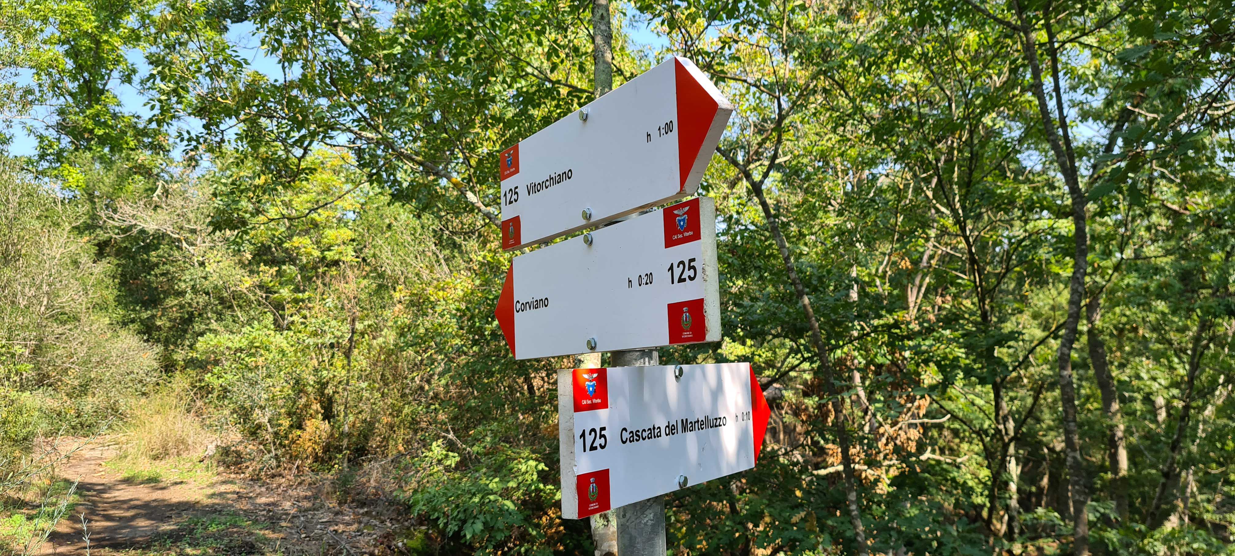 La cascata del Martelluzzo è così raggiungibile direttamente da Vitorchiano, percorrendo il sentiero CAI n.125. Si ricorda che il tratto del 125 in località Corviano è destinato ad escursionisti esperti poiché, specialmente in giornate umide, il fondo è particolarmente scivoloso e richiede esperienza ed attenzione. Fatta queste doverosa premessa, lo scenario naturalistico che si apre è veramente unico: si cammina tra enormi massi di origine vulcanica e si attraversa una rigogliosa vegetazione: una delle zone più affascinanti della Provincia di Viterbo.