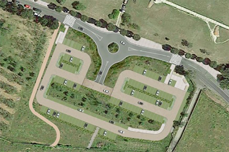 La nuova area di sosta presenterà infine in corrispondenza del settore meridionale, un camminamento pedonale trasversale di accesso al Parco Archeologico, che sarà ubicato a sud dell’area. Tale camminamento verrà realizzato in lastre di grandi dimensioni, autopulenti e antibatteriche.