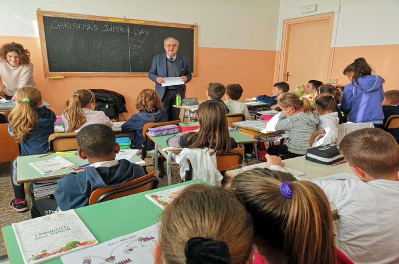 Il primo incontro ha avuto come argomento principale la filiera agricola, focalizzando l’attenzione su quattro produzioni principali del nostro territorio: olio, vino, pane e derivati dal latte. La lezione è stata tenuta da Vannino Cappelloni, Presidente Senior Per Sempre Coldiretti Viterbo, che ha spiegato ai piccoli alunni come avviene la coltivazione e la trasformazione di questi prodotti agroalimentari.