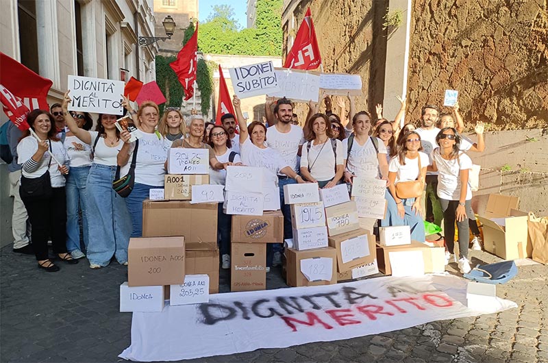 “La campanella è suonata e non saremo più disposti a soccombere. Siamo vivi, siamo uniti e abbiamo la schiena dritta: dignità al merito”, queste le parole degli insegnanti precari che venerdì 27 settembre hanno manifestato a Roma in via Frangipane, sotto gli uffici scolastici regionali. La mobilitazione dal basso ha visto in prima linea i “vincitori invisibili” del concorso straordinario ter 2023 previsto dal Pnrr. In loro sostegno è intervenuta anche Manuela Pascarella della Flc Cgil, unica sigla sindacale presente: “È inaccettabile che si continui a negare la stabilità a migliaia di docenti chiedendo loro di affrontare nuovamente una prova che hanno già superato”.