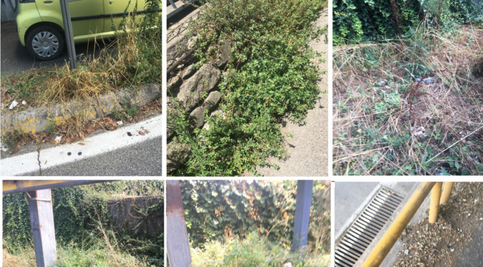 Scatti che denotano il degrado e l’incuria,a ridosso delle mura, a due passi dal centro cittadino (a 50 mt sovrasta il bel palazzo della Camera di Commercio e a 250 mt. c’è piazza Verdi), siamo lungo il tratto del sottopasso che conduce a via della Ferrovia, alcuni residenti di zona, stanchi di condividere il quotidiano con la sporcizia ci hanno fatto la segnalazione:”quelle che dovevano essere le aiole che abbellivano i grandi impianti serviti dalla pubblicità sono divenuti una selva, erba cresciuta a dismisura, ricettore di immondizia da parte degli incivili – in questa sede, ha attecchito lungo il percorso, già reso meno visibile, in alcuni tratti, da erba alta e rovi.