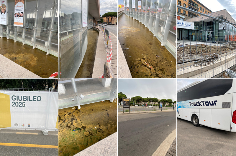Viterbo, Piazza dei Caduti, comunemente conosciuta come Piazza del Sacrario. Luogo di concentramento dei pullman che arrivano da ovunque per fa visita alla città dei Papi. Sono le 10 di questa domenica mattina. Un gruppo di giapponesi è appena sceso e con la guida si dirige verso il centro, l’Ufficio Turistico è imbracato dalle transenne dei lavori a firma PNRR. Il corso di acqua che lo abbelliva nel suo nascere si presenta uno “stagno“ di un colore indefinibile, tra marrone e verde, con rifiuti galleggianti . È la fotografia dell’abbandono che pare essere il comun denominatore di ogni degrado, dalle buche sul marciapiede, ai bagni chiusi in cui è affissa la scritta: “Non oltre 15 minuti”, alle palme secche e curvate nel Tempietto ex chiesa di Santa Maria della Peste. Il parcheggio semivuoto, la solitudine degli immigrati.