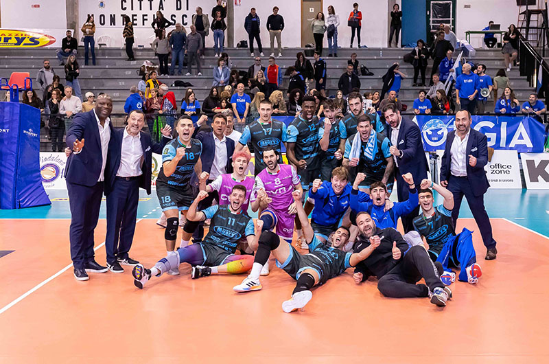 Secondo set: Punto a punto fino all’8 pari. Corrado mette a terra una palla slash e muro di Onwuelo su Link, Tuscania prova a scappare 11/8. Invasione di Pineto, massimo vantaggio Tuscania 15/11. Si va avanti punto a punto con Tuscania avanti 18/14. Corrado mette a terra il 19/14, Tomasello ferma il tempo. Ancora Corrado, 22/15. Pallonetto di Onwuelo 24/15. L’attacco di Corrado si infila tra il muro e la rete 25/15, due a zero Tuscania.