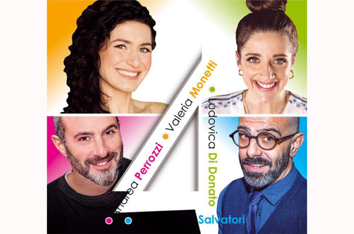 QUATTRO è una commedia divertentissima, avvincente, mai banale, dove a colpi di battute e di gag i quattro protagonisti si intrecciano in un vero e proprio “tetris” tra amore e amicizia.