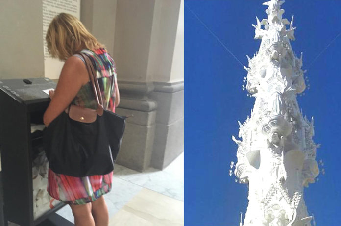 Le vasche di fontana sotto alle guglie gotiche di Gloria, la Macchina di santa Rosa ideata da Raffaele Ascenzi sono stati pensati come a dei contenitori. All’interno come nei tre trasporti precedenti anche il 3 settembre verranno introdotti i messaggi che i viterbesi scrivono durante l’anno lasciandoli nel contenitore a fianco all’urna della santa in Basilica, custoditi con dovizia dalle suore le alcantarine francescane . Si tratta di richieste, di preghiere, di voti. Sono i pensieri d’amore e d’aiuto che i viterbesi rivolgono alla propria patrona. Un particolare pensato da Ascenzi per rendere il trasporto più vivo e avvicinare sempre più la Macchina alle persone. Messaggi e pensieri che ogni devoto a S. Rosa potrà scrivere e lasciare al monastero che voleranno verso la nostra patrona.