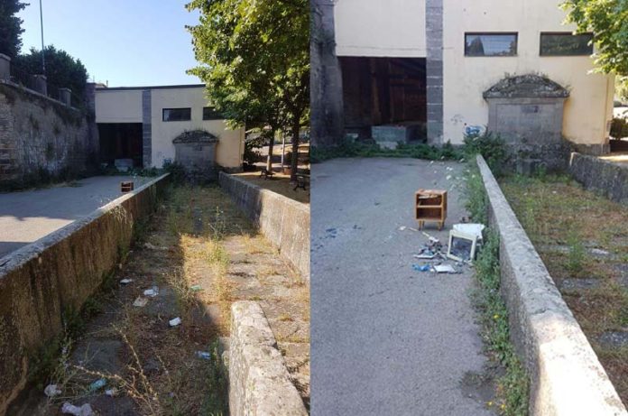 Nel novembre dello scorso anno ci pensò Viterbo Civica a ripulire l’antico lavatoio della Quercia, al solito i volontari armati di: guanti, pale, scope e zappe ridiedero splendore e dignità all’antico lavatoio eliminando la sporcizia e l’imbrattamento delle scritte incivili ad opera  di vandali. Quel luogo era un tempo  l’abbeveratoio per le bestie in compravendita alla fiera de La Quercia , importantissimo per il mercato del bestiame  in  quella zona del Prato, così chiamata dai querciaioli, per i quali oggi  è  ancora un punto di riferimento attivo, un punto  d’incontro degli anziani della comunità. Lo stato di degrado è attestato dagli scatti aggiornati a ieri,segnalato anche da altre testate. Possiamo al solito richiamare l’attenzione dei volontari delle società ambientalistiche ecologiche che si muovono autonomamente ma la Quercia è una frazione del comune di Viterbo, e via Campo Graziano il luogo dove è censito il lavatoio dovrebbe essere monitorata dallo stesso Comune e gli atti di inciviltà e di vandalismo puniti e ispezionati dalle telecamere.