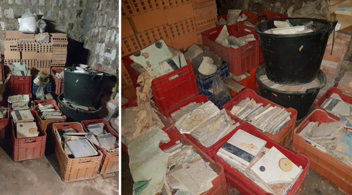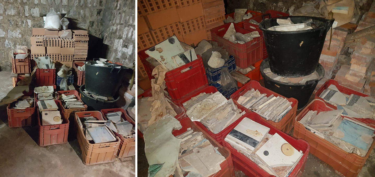 Le maioliche della torre di piazza del Comune in un sotterraneo del Museo