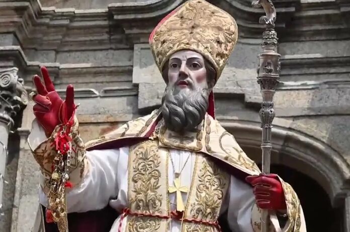 I bambini vengono spogliati dei loro abitini perché possano essere “vestiti della protezione del Santo”; i loro vestitini, riposti in un sacchettino col loro nome, vengono deposti in dono ai piedi della statua di San Nicola e poi verranno “ricomprati” dai genitori e il ricavato verrà speso per comperare vestiti ai bambini poveri. Ci è voluto un po’ naturalmente perché tutti i bambini fossero benedetti e c’era una bella “confusione” davanti all’altare di mamme e papà che si davano il cambio per portare e riprendere i loro bambini, con gioia e un po’ di apprensione specie quando dovevano affidare i più piccoli.
